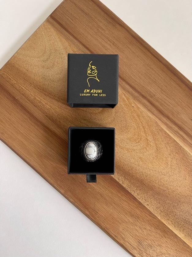 Accentuate your style with this Charcoal Statement Oval Gemstone Signet Ring! Featuring a natural stone signet ring, this trendy jewellery piece will surely make your outfit stand out. Choose from 3 different colors - blue, white, and brown - and 5 different sizes, to suit your individual style. Make a bold statement with this signature piece!