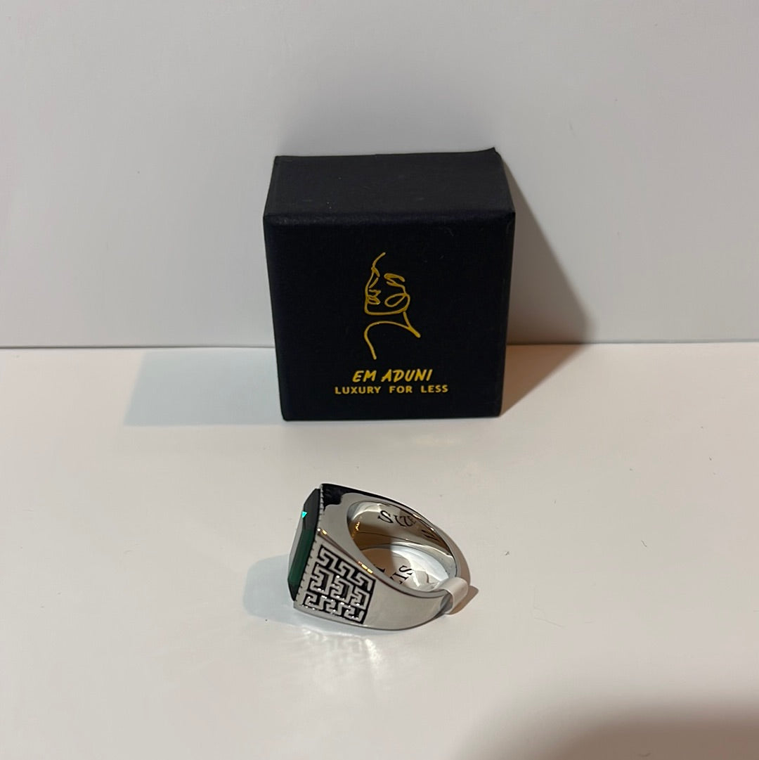 This unique Silver Engraved Royal Stone Ring showcases the finest craftsmanship. Embellished with a blue stone, Redstone, black stone, and green stone, this attractive ring will make any outfit stand out. Constructed from the highest quality materials, this ring offers luxurious comfort and timeless style.