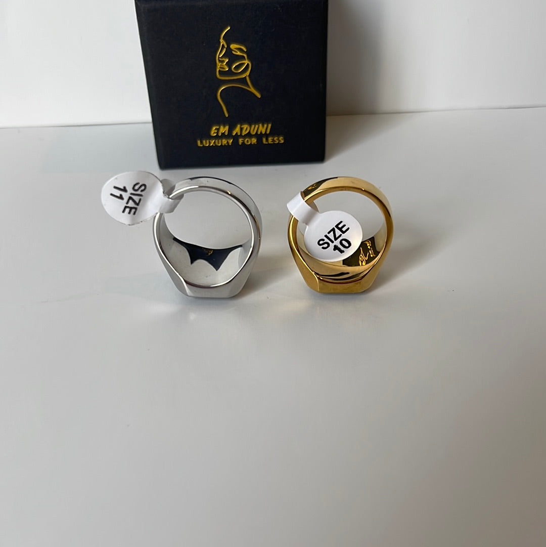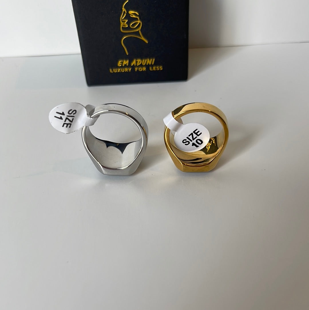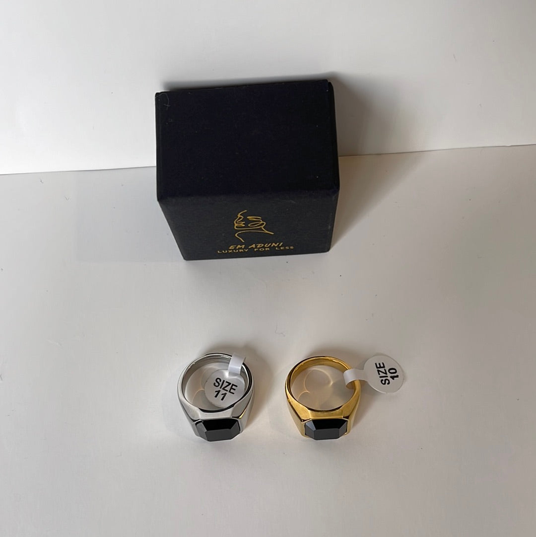 This simple yet elegant black stone ring will add a touch of femininity to your everyday look. Crafted with either silver or gold metal and available in multiple sizes, this piece is perfect for any occasion. Get yours now for a limited time!